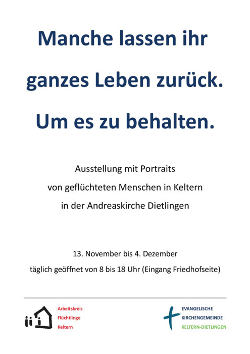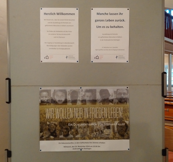 Ausstellung mit Portraits von geflüchteten Menschen in Keltern in der Evangelischen Andreaskirche.
