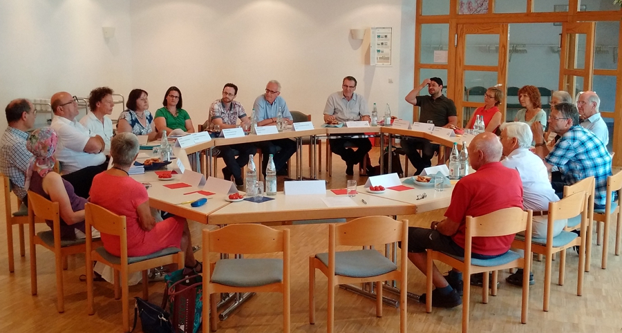 Am 19. Juni 2017 trafen sich Mitglieder des Leitungskreises und einige Familienpaten mit Schulleitern und Lehrerinnen der Johannes-Kepler-Grundschule Keltern, der Carl-Dittler-Realschule Wilferdingen und der Bergschule Singen. Mit dabei waren auch der Bildungskoordinator des Jugendamtes des Enzkreises, der Integrationsbeauftragte der Gemeinde Keltern und der Sozialbetreuer von QPRINTS&SERVICES gGMBH.