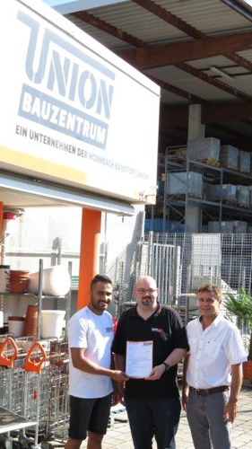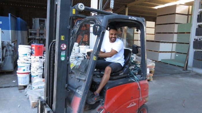 Nach einem mehrwöchigen Praktikum, das er im Lager von UNION Baustoffe in Ittersbach absolvierte, erhielt er vom Niederlassungsleiter Volker Dennig das Angebot, dort eine Ausbildung zum Fachlageristen zu machen. Bereits während des Praktikums wurde er in den Gebrauch des Gabelstaplers eingewiesen, inzwischen hat er die offizielle Fahrerlaubnis für "Flurförderfahrzeuge", die er begeistert nutzt!