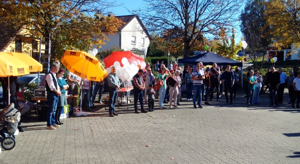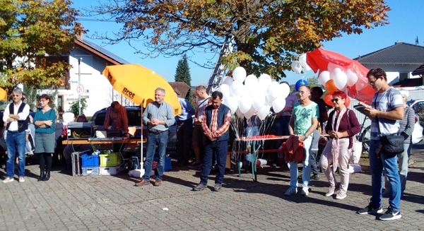Bochinger bedankte sich neben den Festorganisatoren Rudi Herrmann und Martin Meier insbesondere bei Stefan Vetter. Er ist Gesamtkoordinator des Arbeitskreises, der etwa 50 aktive zählt. Am Ende ließen die Besucher gemeinsam bunte und mit weißen Friedenstauben bedruckte Luftballons in den Himmel steigen.