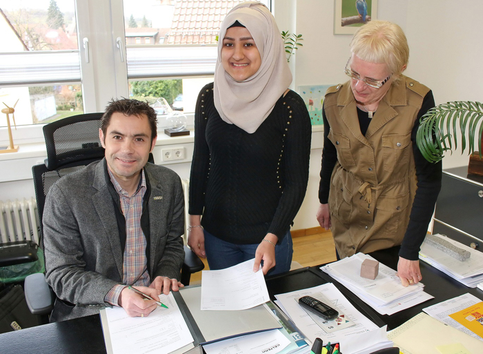 Bürgermeister Steffen Bochinger, Maram Sulaiman und Susanne Bischoff. (von links)