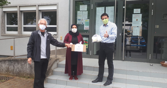 Auch das Rathaus in Ellmendingen wurde bedacht und Bürgermeister Steffen Bochinger freute sich über 80 Masken für die Weitergabe an Mitarbeiter und Bürger.