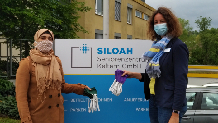 Es herrschte in den letzten Wochen emsige Geschäftigkeit in der Nähwerkstatt des Arbeitskreises Flüchtlinge Keltern im Oberlinhaus in Dietlingen. Es wurde gemessen, geschnitten, genäht. Mehrere arabische Frauen, Geflüchtete aus Syrien und Afghanistan, die seit einigen Jahren in der Gemeinde leben, haben beschlossen, Mund-Nasen-Masken zu nähen und verschiedenen Einrichtungen zur Verfügung zu stellen.