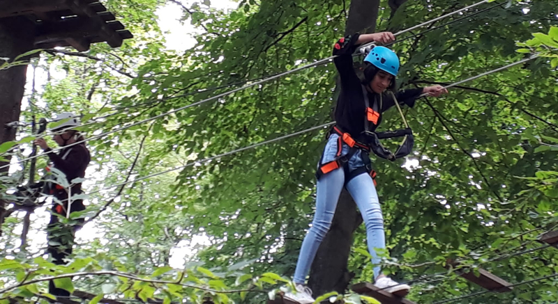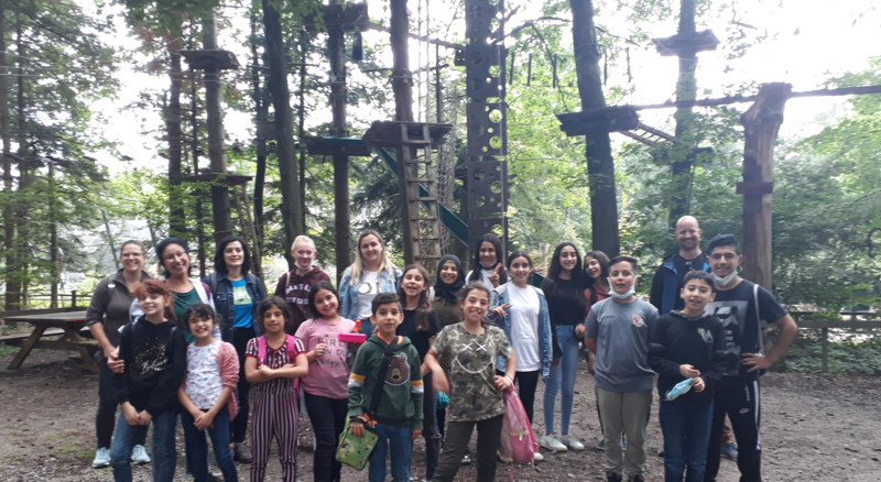 Der Ausflug in den Kletterpark war einer von vielen Programmpunkten des Ferienprogramms für Geflüchtete aus Keltern und Birkenfeld, das von Amal Zeghouani, der Integrationsbeauftragten für Keltern, mit dem Internationalen Bund und einigen externen Partnern organisiert und durchgeführt wurde.