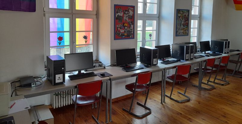 Im Medienraum des Jugendzentrums, der in der Vergangenheit bereits für die offene Kinder- und Jugendarbeit genutzt worden war, wurden für diesen Zweck 8 PCs mit neuem Betriebssystem ausgerüstet, Bildschirme installiert, Drucker und Beamer aufgebaut. Angeboten werden in Zukunft regelmäßig Workshops, Treffen, Spiele-Mittage, an denen die Jugendlichen bei Interesse teilnehmen können. Ideen und Anregungen hierfür sind von einer kleinen Gruppe bereits Anfang des Jahres zusammengetragen worden. "Die Vorschläge reichen von "Wie funktioniert eine Tastatur? Wie war das Leben ohne Internet? Wie arbeite ich mit einem PC? Bis hin zum Thema Sicherheit im Internet. Das ist eine spannende und herausfordernde Themenvielfalt" kommentiert Simon Theessen sein künftiges Betätigungsfeld. Als Student des Studiengangs Soziale Arbeit (BA) und angestellt beim Internationalen Bund wird er künftig das Projekt betreuen und die Nachmittage gemeinsam mit den Jugendlichen gestalten.